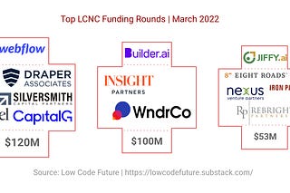 What happened in March 2022? Again, over $300 Million invested in LowCode/NoCode, across 9 companies.
