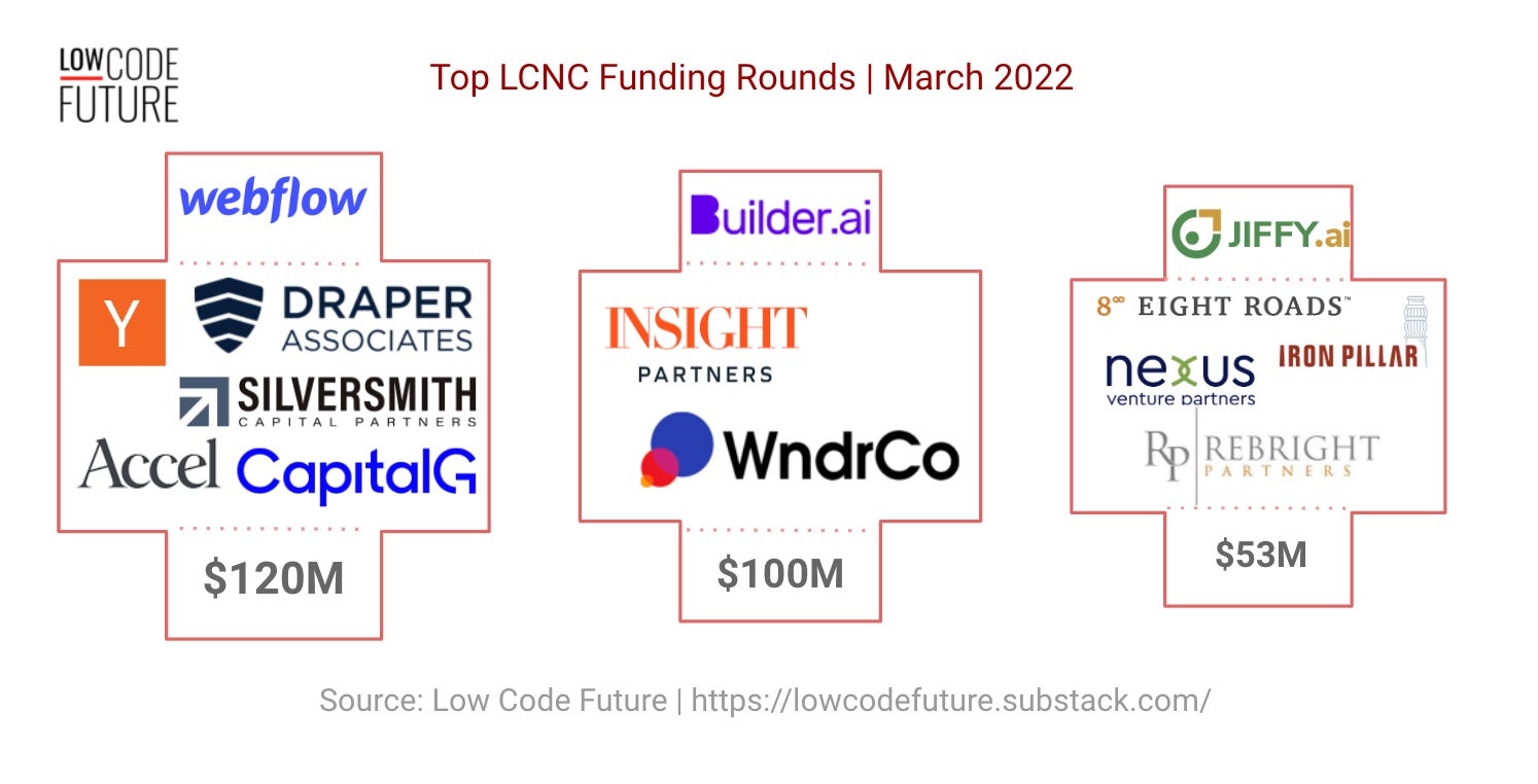 What happened in March 2022? Again, over $300 Million invested in LowCode/NoCode, across 9 companies.