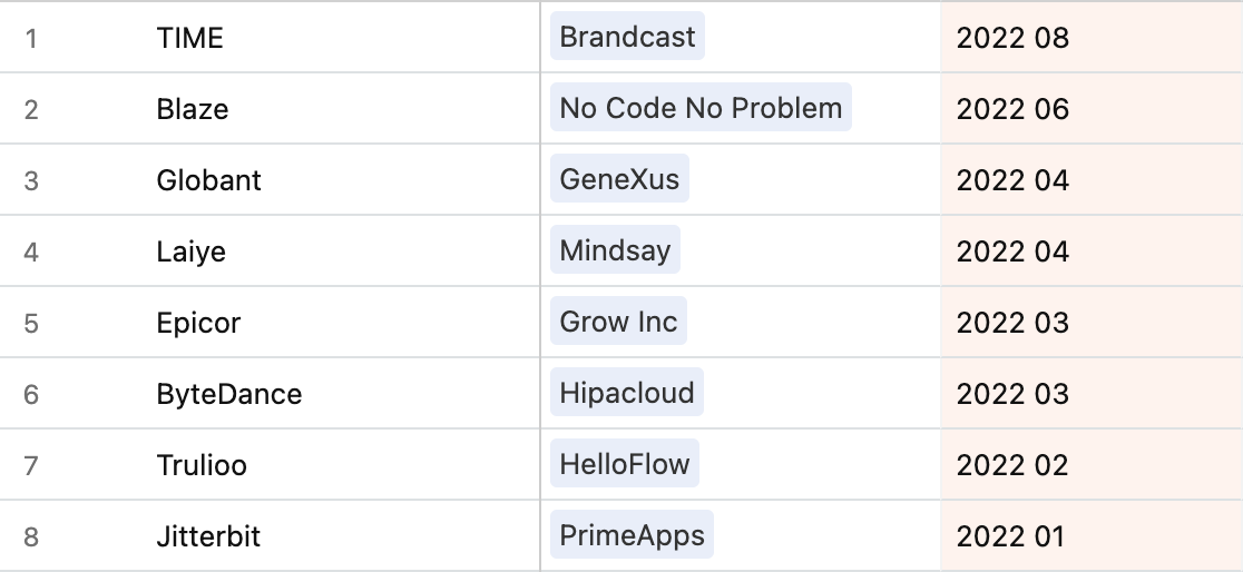 What happened in August 2022? Over $220 Million invested in LowCode/NoCode, across 12 companies.