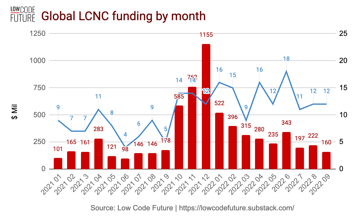 What happened in September 2022? Over $160 Million invested in LowCode/NoCode, across 12 companies.
